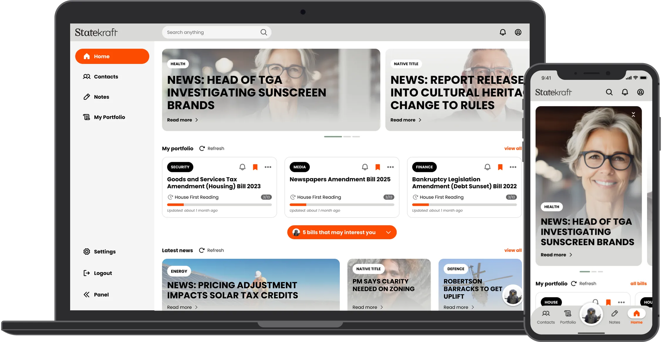 With Statekraft, you choose what you want to track, in which policy portfolio or industry context and from which perspective - parliamentarian, public servant, government relations, legal professional, journalist, risk and compliance.